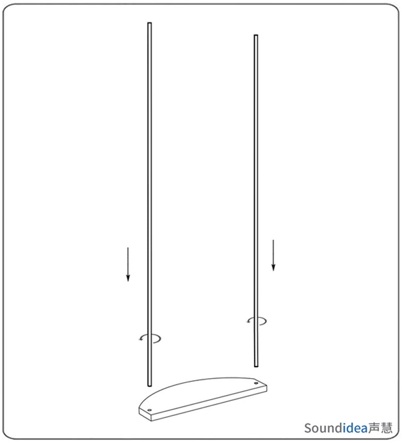 1、将两根1800mm长的管插入底座管孔,注意要插到底,您可以一边旋转一边向下用力,如下图: