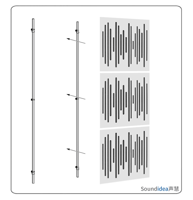 4、将声学模块卡到墙面的两根不锈钢管上,如下图: