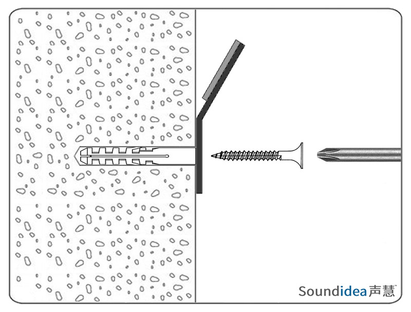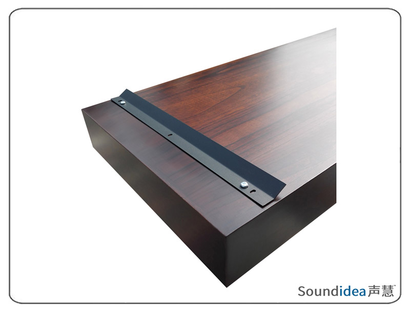 5、将剩下的两根挂件,用附送的螺丝固定到声学产品后面,然后将声学产品挂到墙壁挂件上,适当调整位置和水平即可。